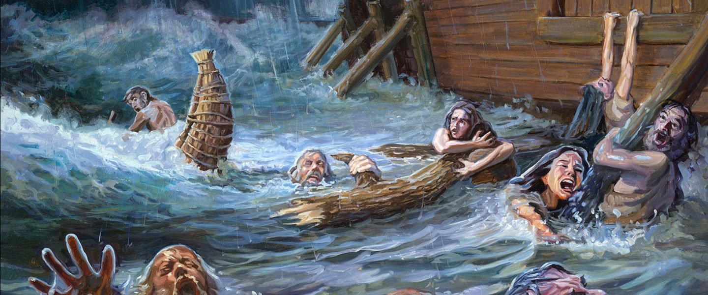 O Dilúvio: Após entrar na arca com sua família e os animais, Deus fechou a porta. As chuvas começaram e a terra ficou submersa por 40 dias e 40 noites (Gênesis 7:12). As águas cobriram as montanhas mais altas.